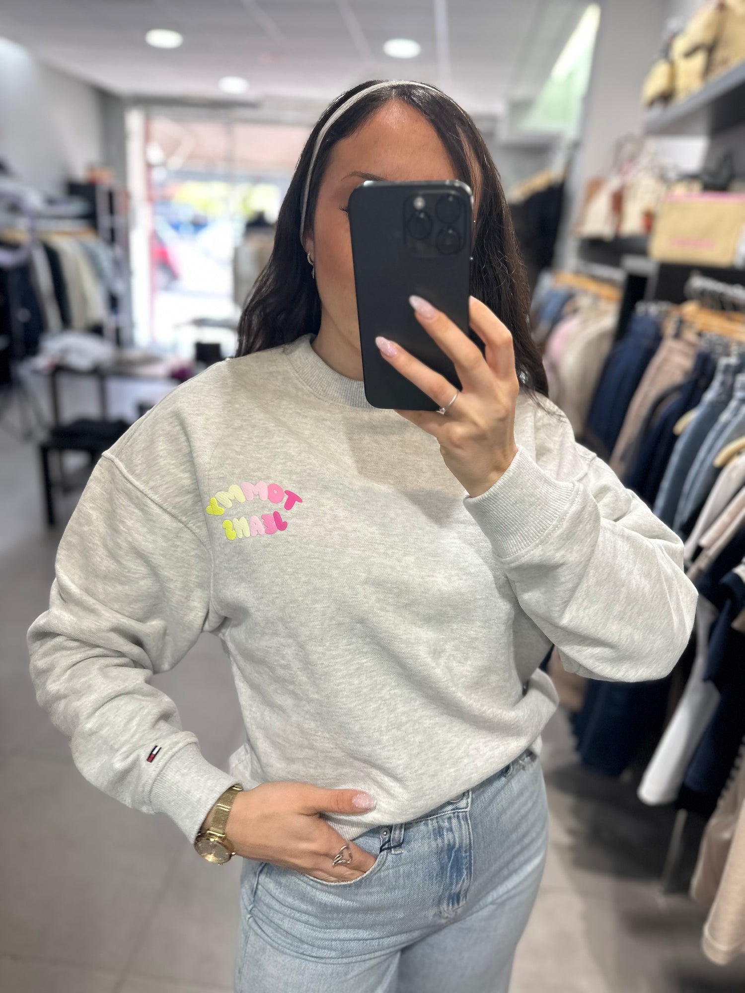 CAMISETA GUESS TAUPE CON LOGO LENTEJUELAS BORDADAS