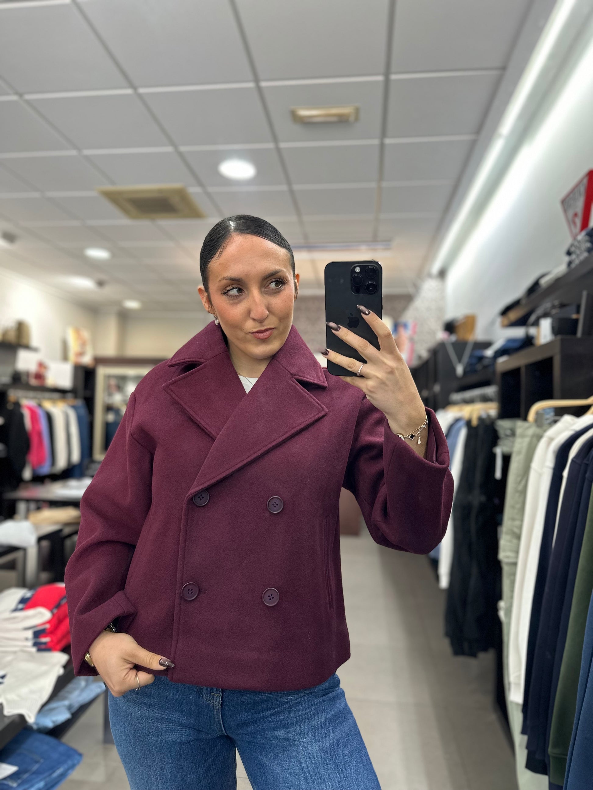 ABRIGO TIFFOSI CORTO PAÑO TINTO