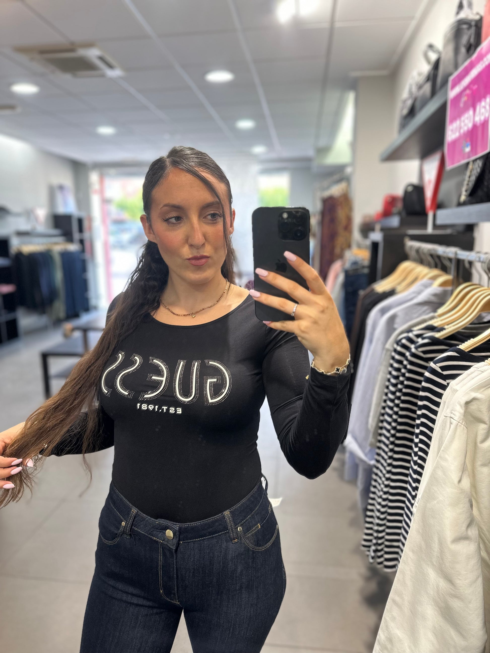 BODY GUESS NEGRO CON LOGO BRILLOS