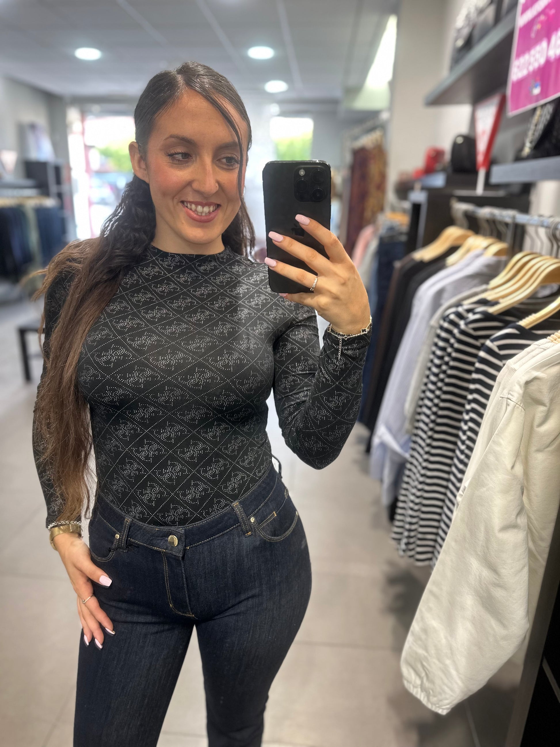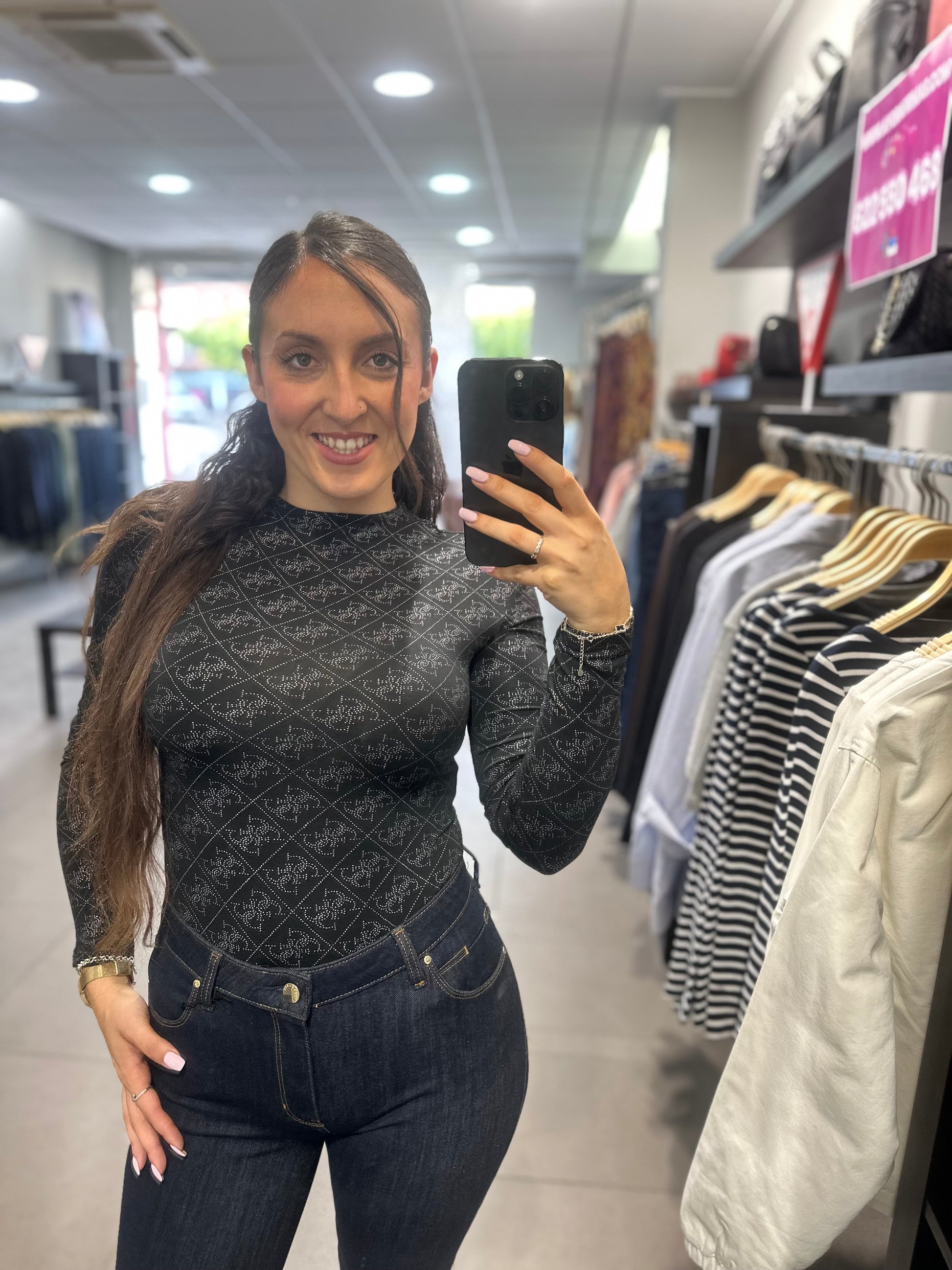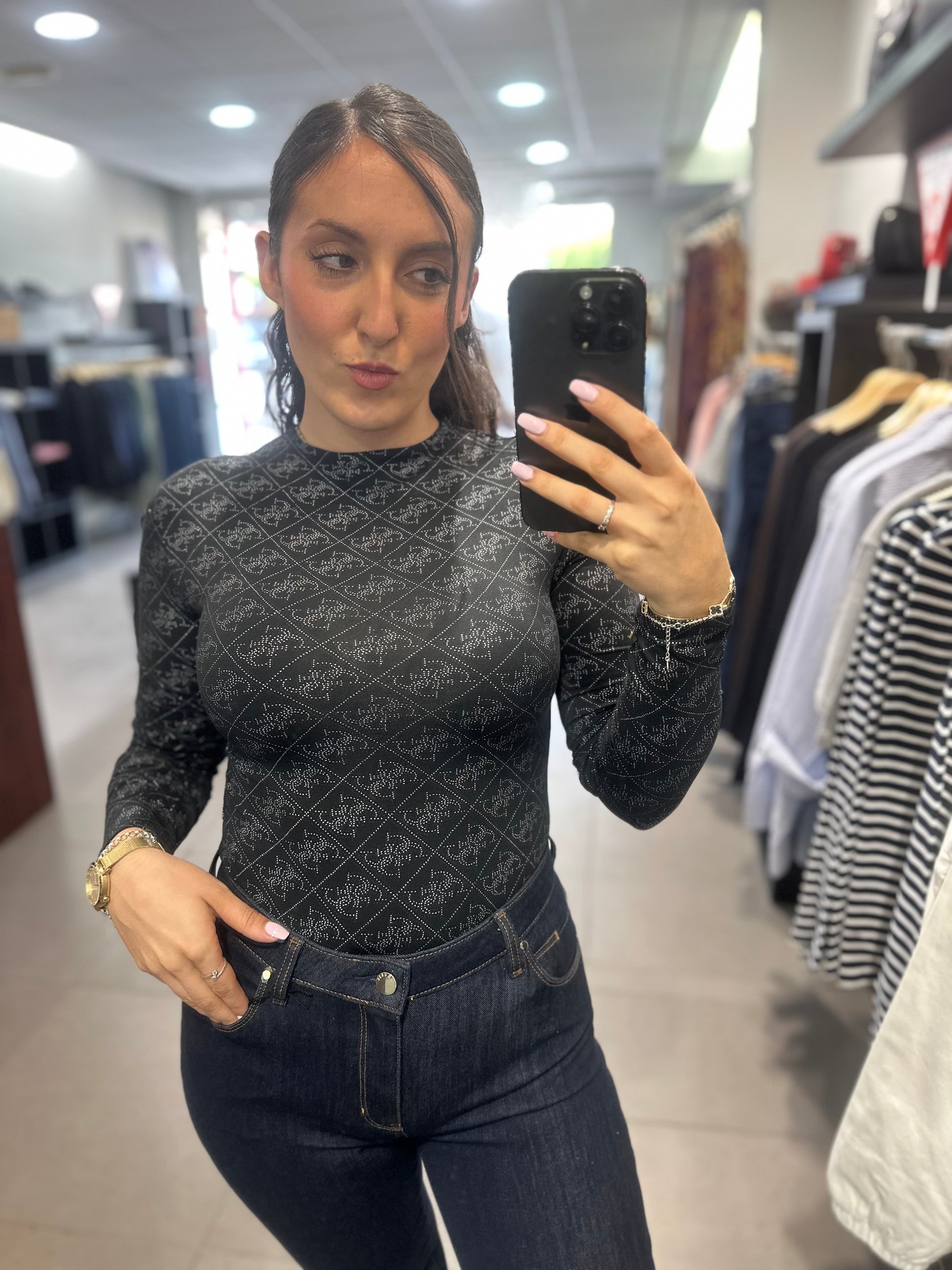 BODY GUESS NEGRO LOGO 4G ALL OVER PLATEADO