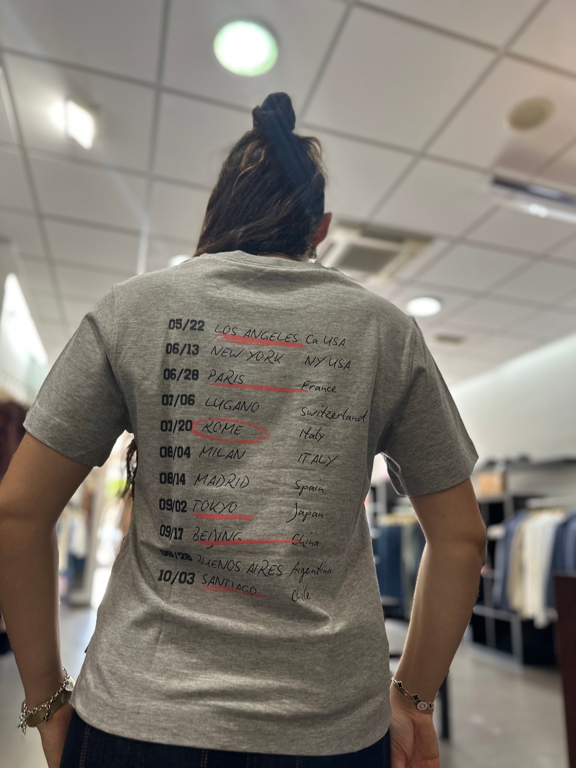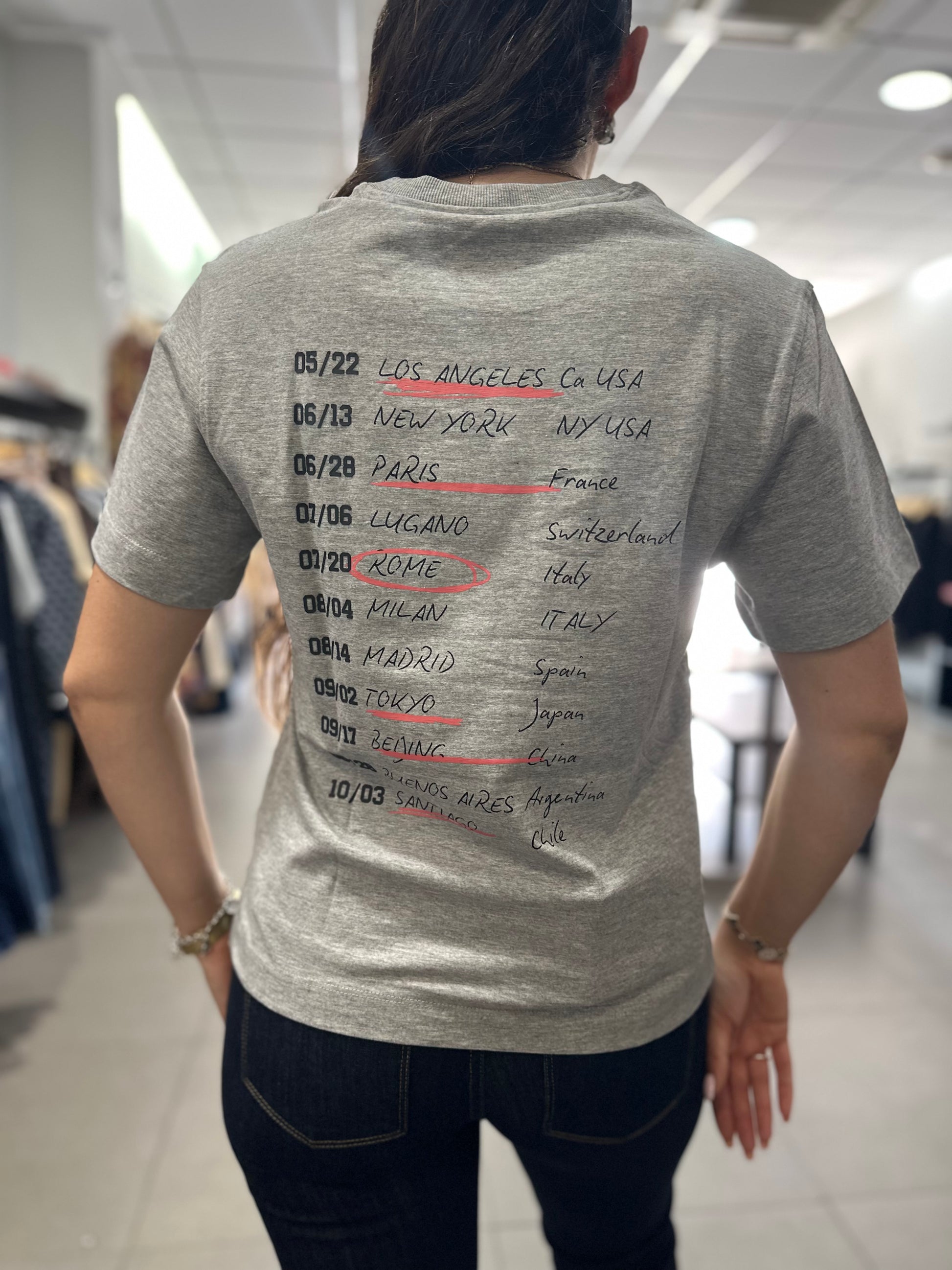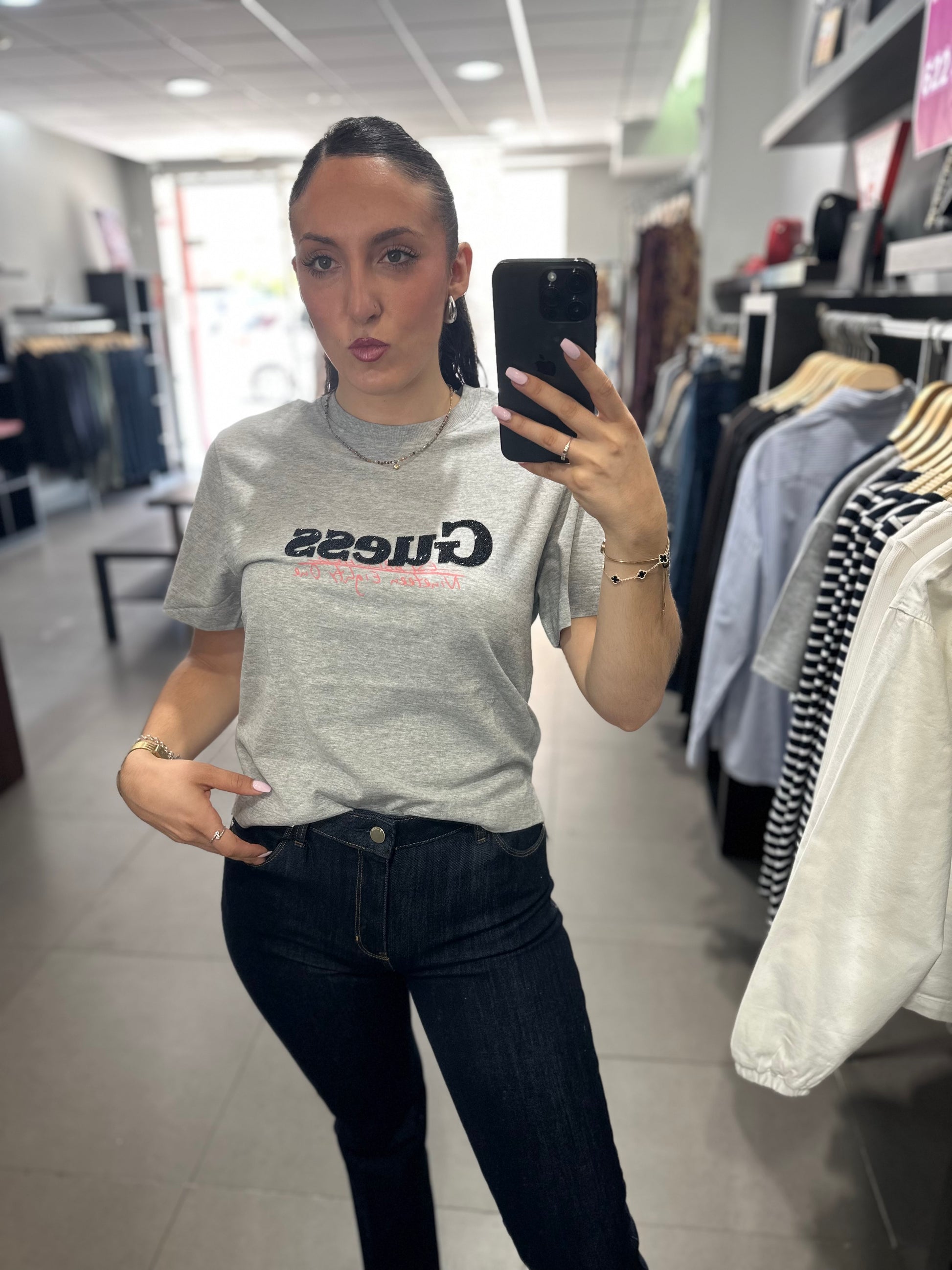 CAMISETA GUESS GRIS LOOGO Y BRILLO Y ESPALDA