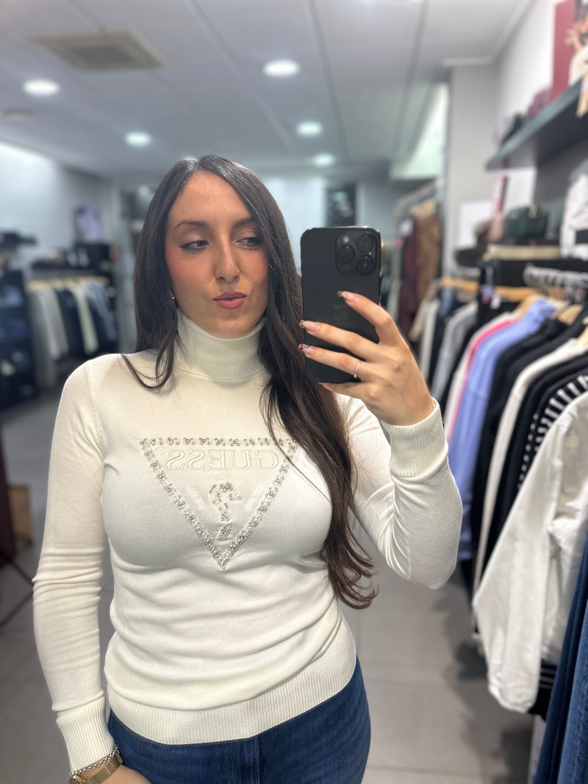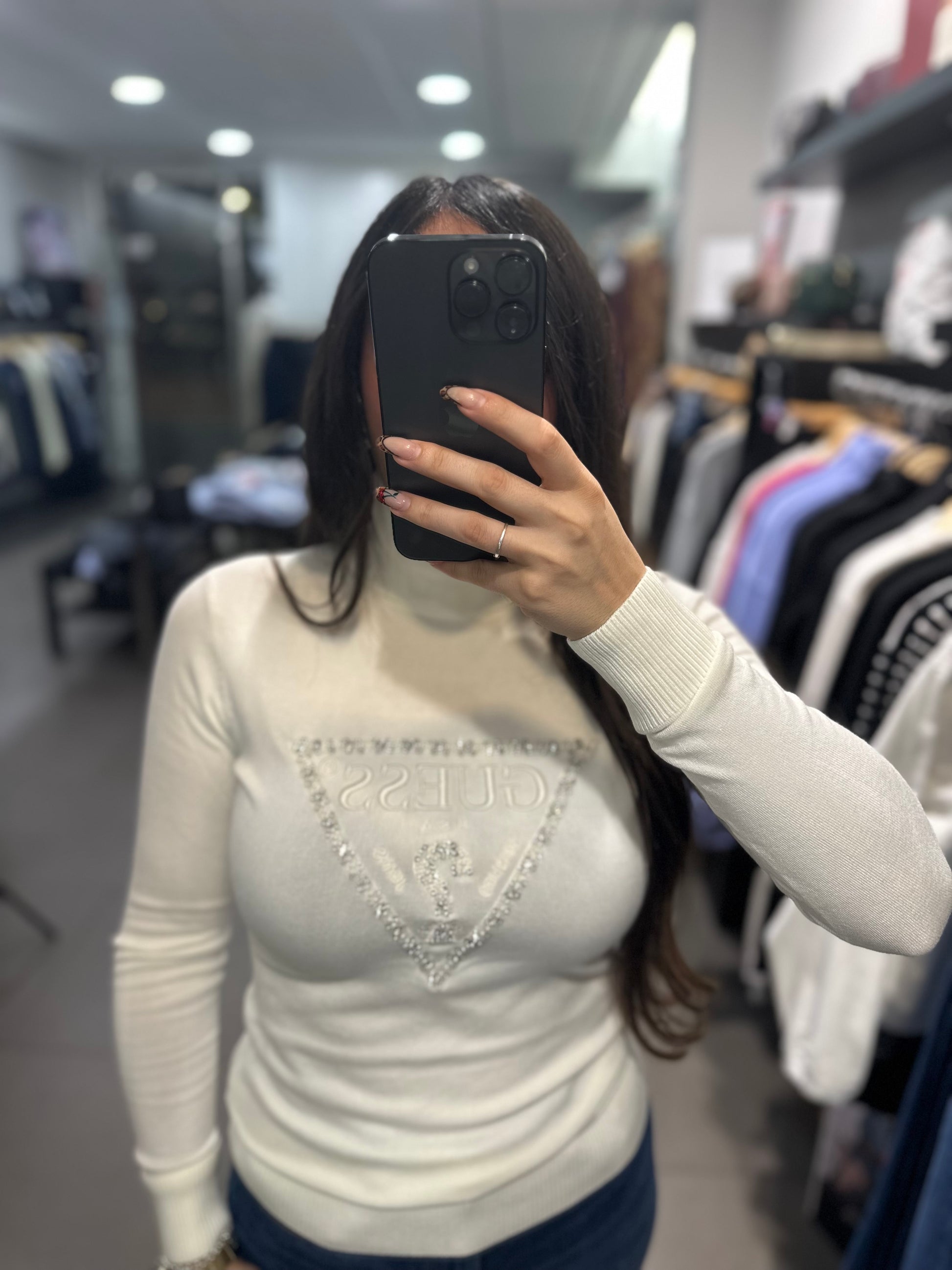 JERSEY GUESS CUELLO ALTO CRUDO LOGO BRILLOS