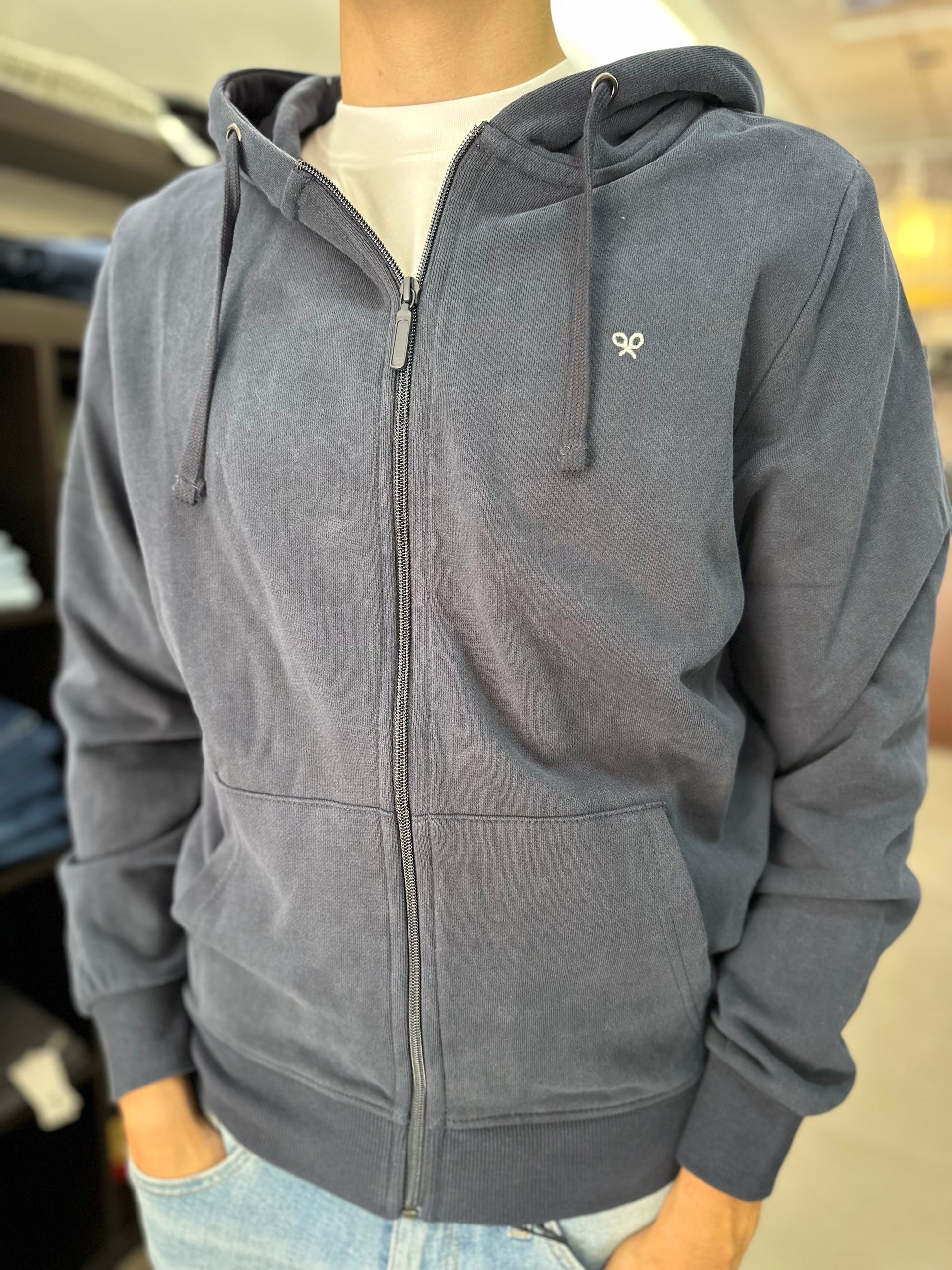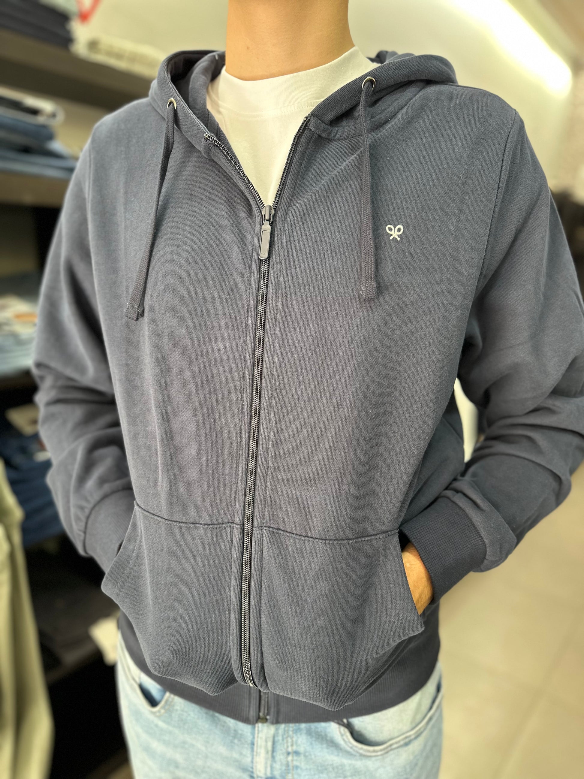 SUDADERA SILBON CON CREMALLERA Y CAPUCHA AZUL MARINA