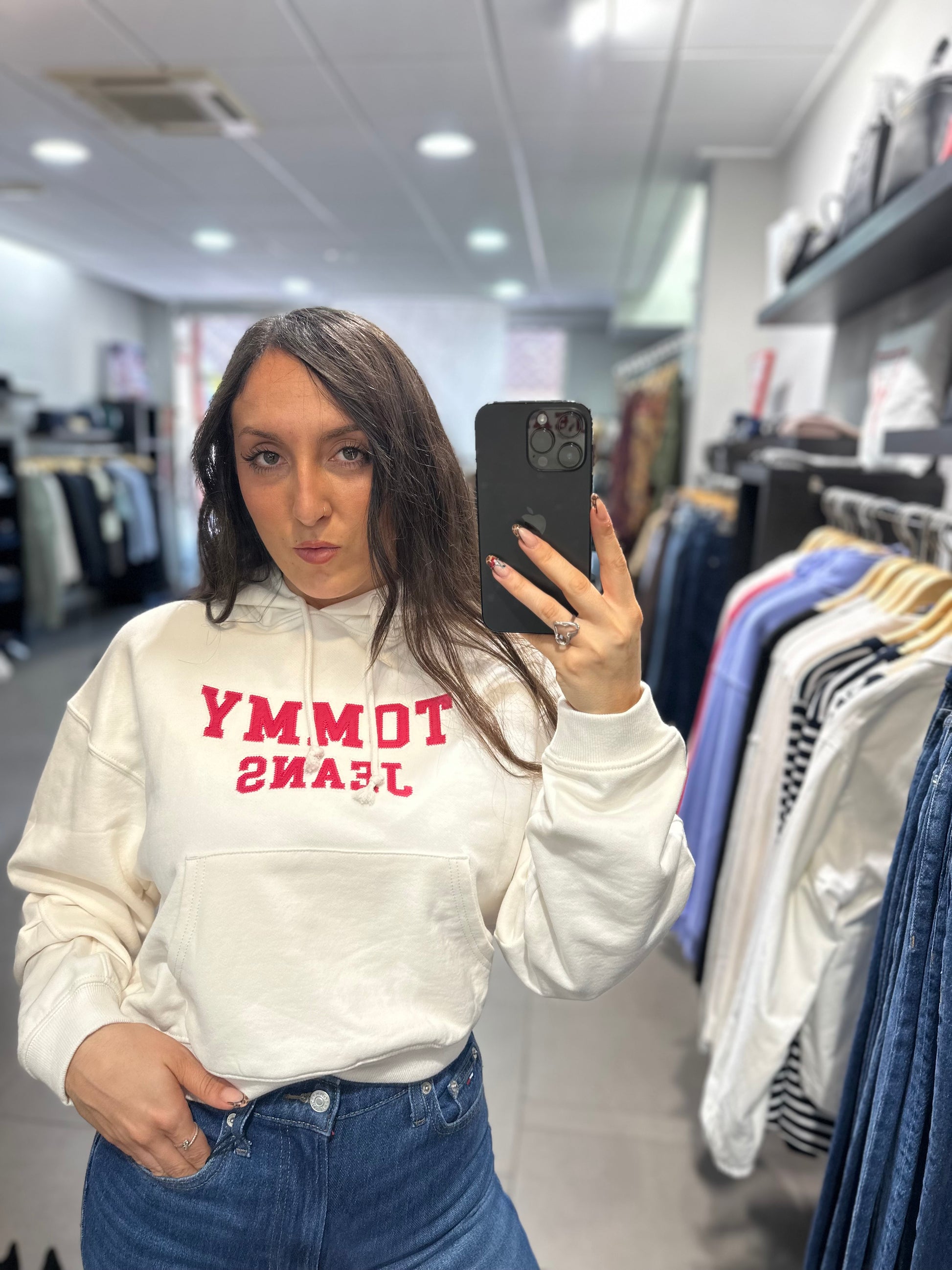SUDADERA TOMMY JEANS BLANCA CAPUCHA Y LOGO FRAMBUESA