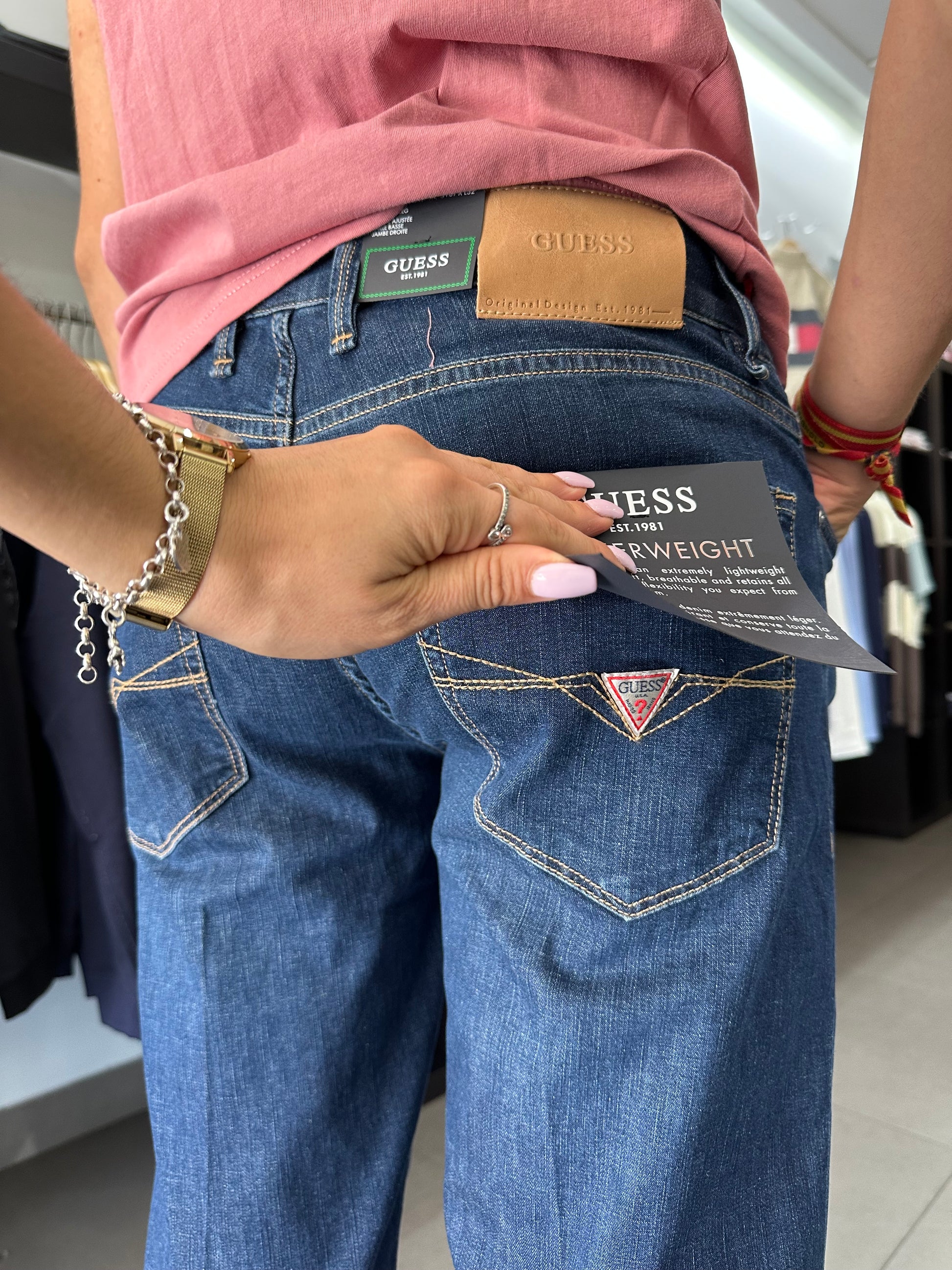 VAQUERO GUESS CORTE RECTO AZUL OSCURO CON LOGO BORDADO